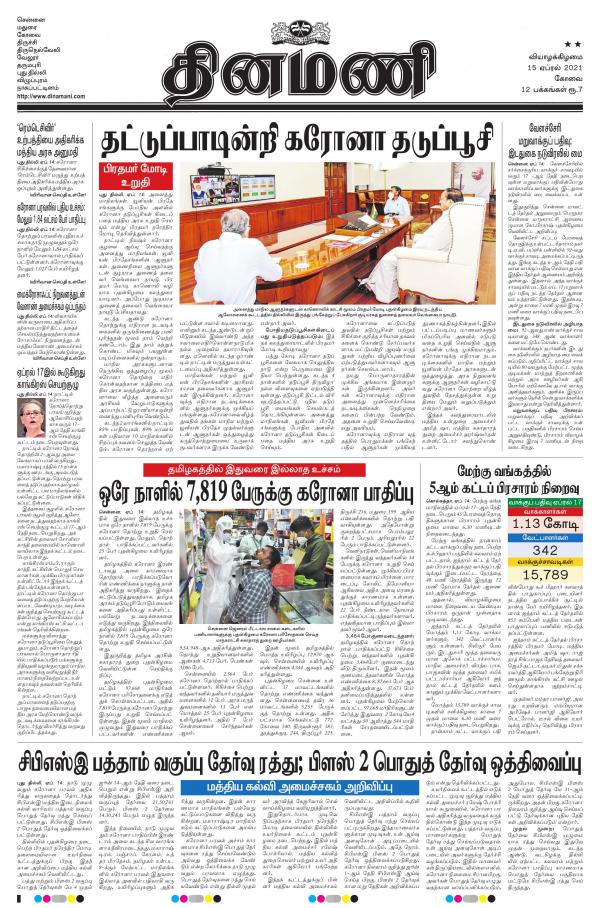 Tamil News Paper Today : Dinakaran E Paper Tamilmurasu E Paper Tamil News E Paper Tamil News - A man called up the hospital and said:. Read latest tamil news and breaking news in tamil online. #tamil news today, tamil news for today, tamil news on today, tamil news today live. Tamil newspapers or tamil news paper and tamil news sites read millions of people not only in india but also read overall people in the whole world daily based. 27 июня в 20:25 ·. India's no.1 national tamil daily newspaper website.